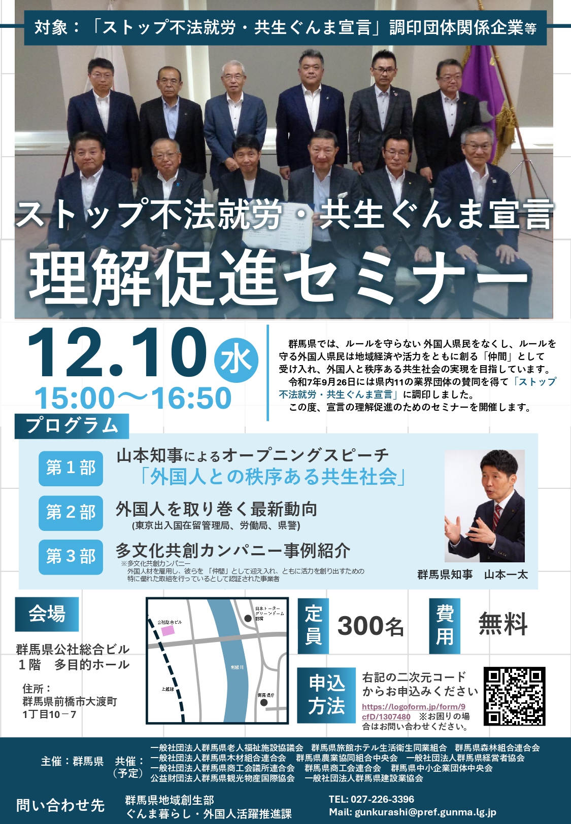 令和7年9月26日には県内11の業界団体の賛同を得て「ストップ不法就労・共生ぐんま宣言」に調印しました。
