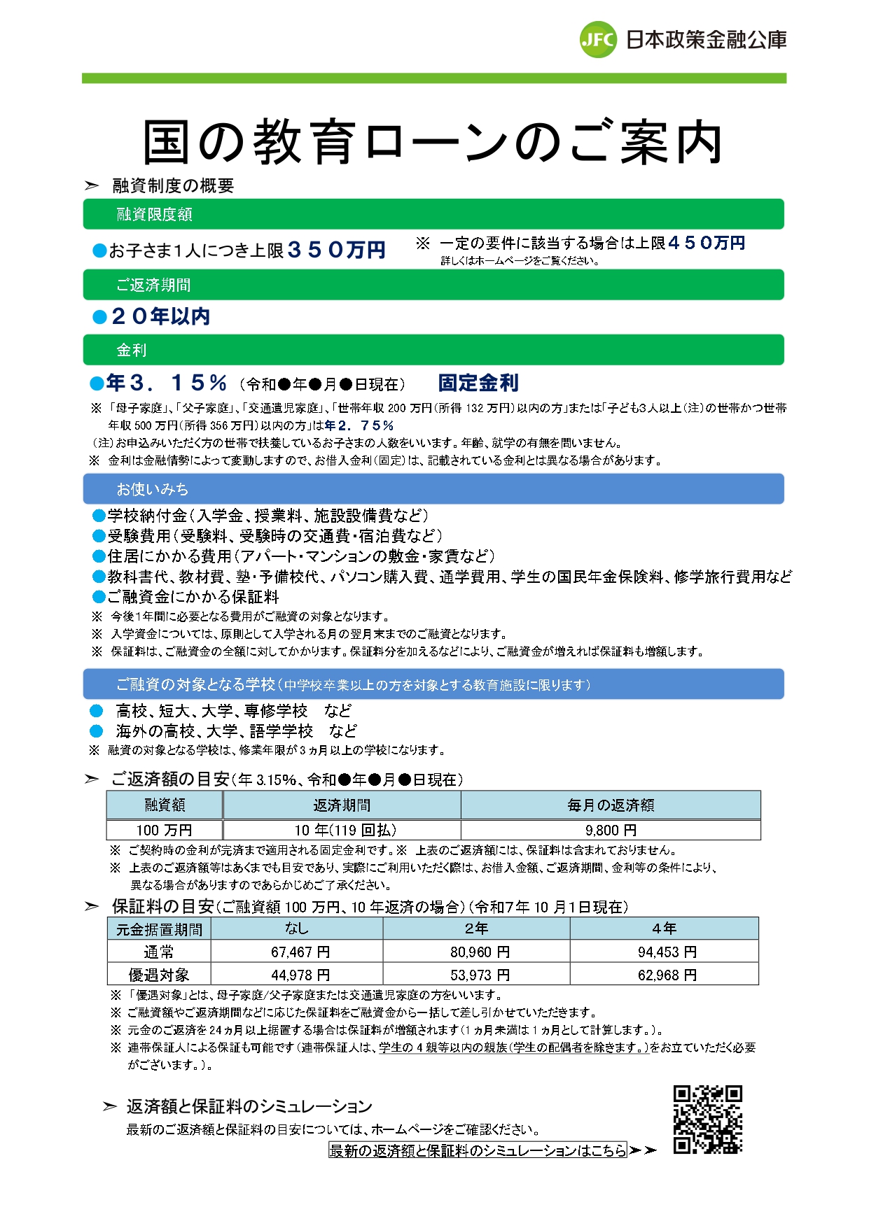 日本政策金融公庫より国の教育ローンのご案内です。