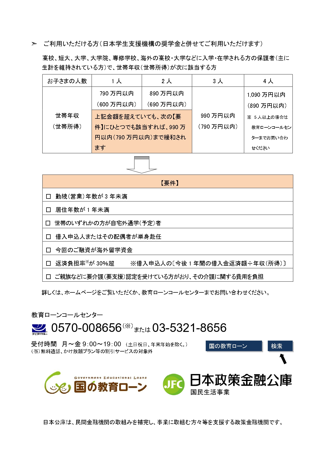 ご利用を検討される方は教育ローンコールセンターまでご連絡ください。